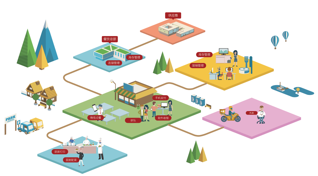 平臺提供餐飲企業運營管理所需要的全案信息化支撐系統,以業務層獲取的基礎數據,為餐飲企業提供專業化的運營服務。